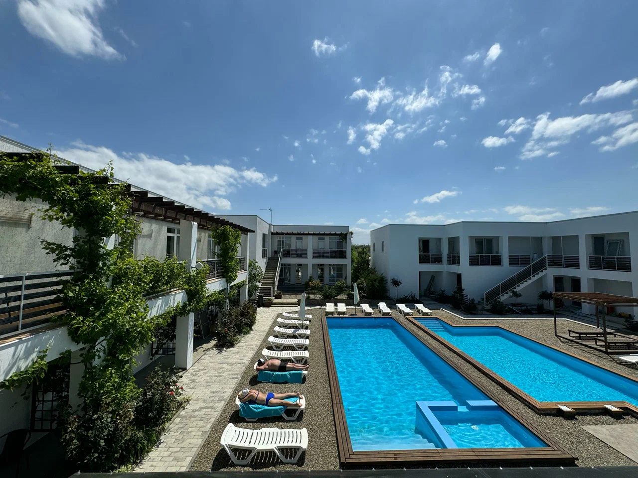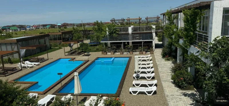 На территории отеля расположены два открытых бассейна, которые станут настоящим оазисом в жаркие дни. Один из бассейнов с подогревом идеально подходит для вечернего купания, а рядом находятся шезлонги и зонтики, где можно комфортно отдохнуть. Для маленьких гостей предусмотрен детский бассейн и площадка, где они смогут весело провести время.